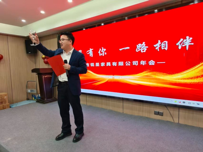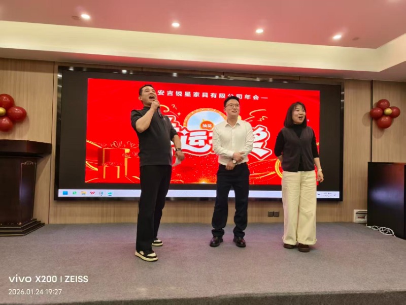 2026. január 24-én Anji Ruixing bútorok éves találkozóját a tekintélyes Anji Borui Hotelben tartotta, ahol a cégvezetők és a menedzsment összegyűlt, hogy megünnepeljék az elmúlt év eredményeit és megvitassák a jövőbeli célokat. A rendezvény tele volt izgalommal, bajtársiassággal és a kiemelkedő munkák elismerésével.